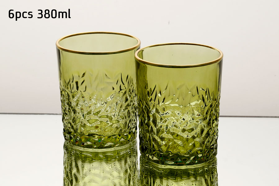 סט 6 כוסות וויסקי 380 מ”ל GREEN GOLD CRYSTALINE