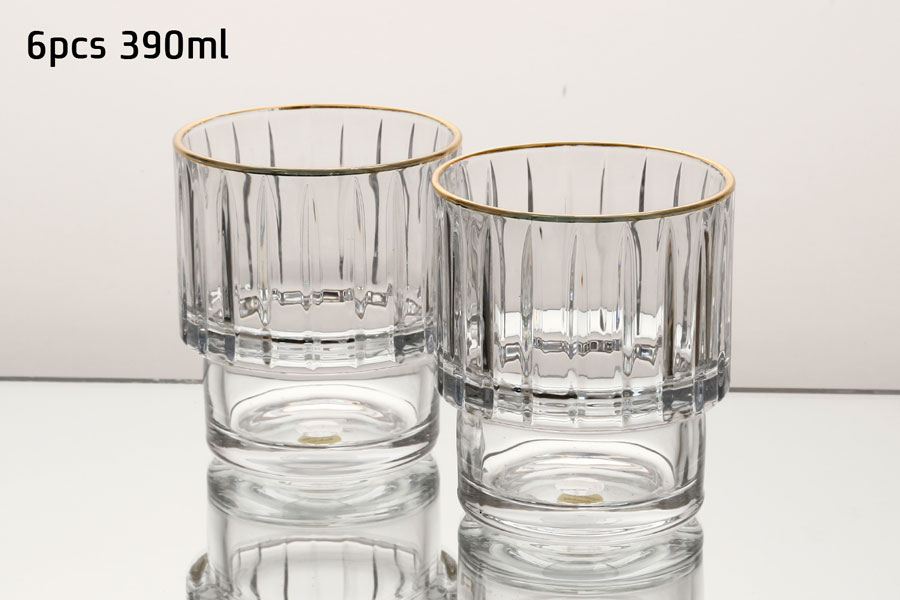 סט 6 כוסות וויסקי 390 מ”ל CRYSTALIN פס זהב