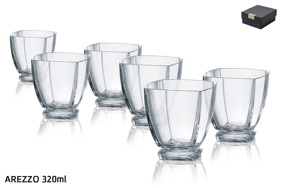 סט 6 כוסות ויסקי קריסטל בוהמיה Arezzo 320ml