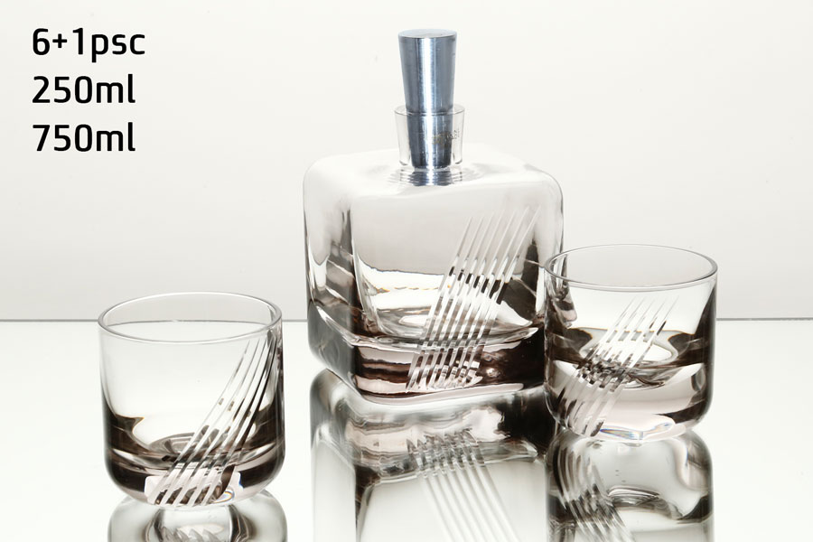 סט 6 כוסות ויסקי CRYSTALINE אפור + דקנטר עם מכסה נירוסטה