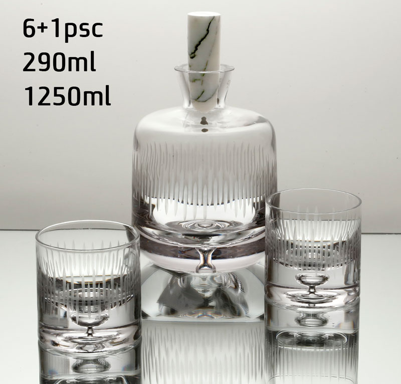 סט 6 כוסות ויסקי CRYSTALINE + דקנטר עם מכסה שיש