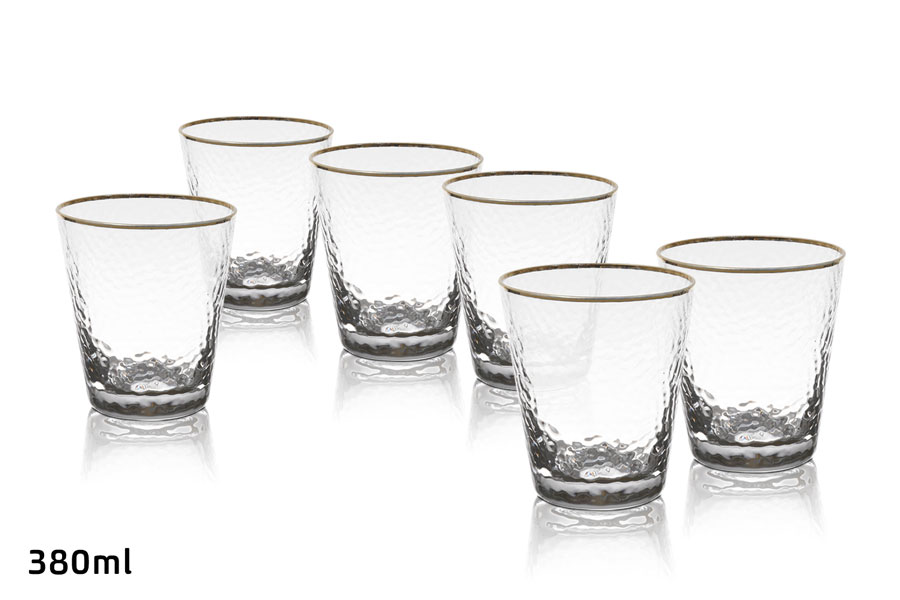 סט 6 כוסות קריסטל פס זהב