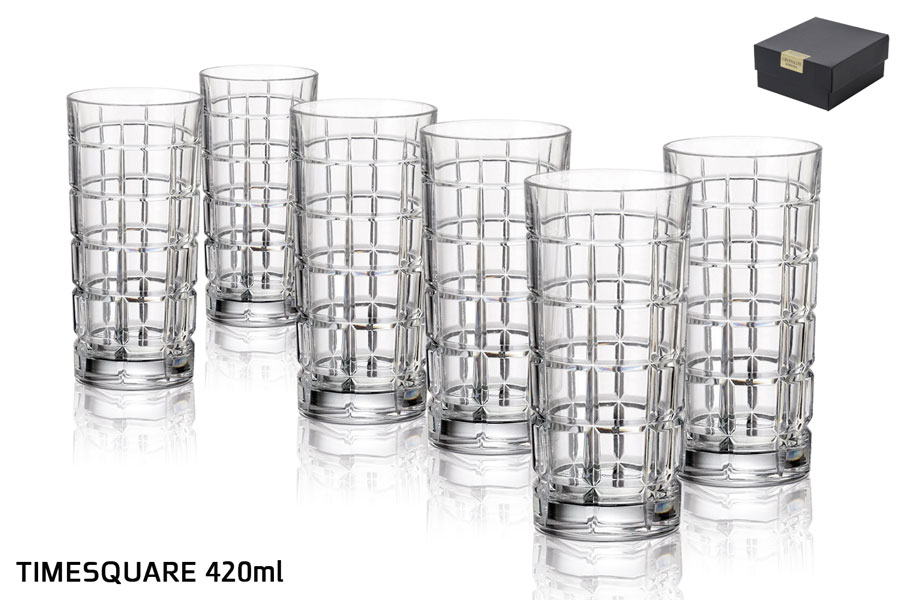 סט 6 כוסות שתיה 420ml קריסטל בוהמיה TIMESQUARE