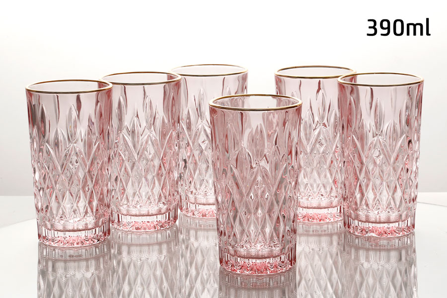 סט 6 כוסות שתייה 390 מ”ל CRYSTALINE ורוד פס זהב