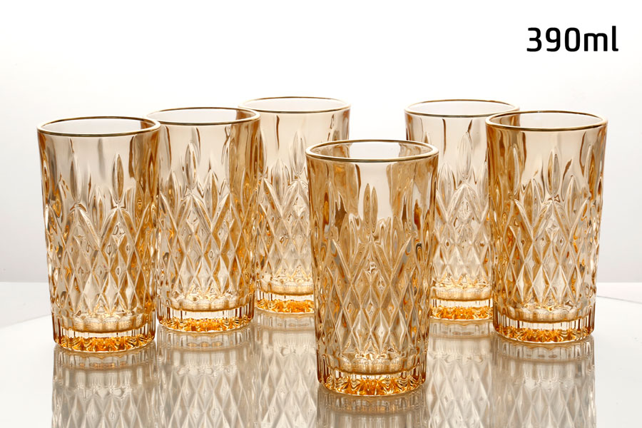 סט 6 כוסות שתייה 390 מ”ל CRYSTALINE כתום פס זהב