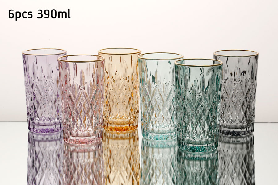 סט 6 כוסות שתייה 390 מ”ל CRYSTALINE צבעוני פס זהב