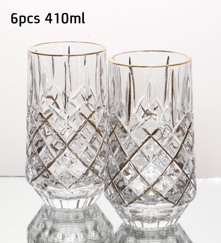 סט 6 כוסות שתייה 410 מ”ל CRYSTALIN פס זהב