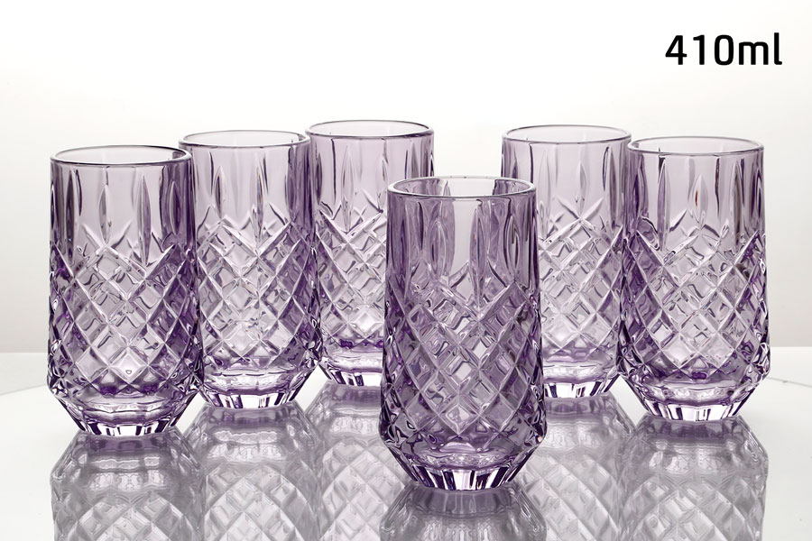 סט 6 כוסות שתייה 410 מ”ל CRYSTALINE סגול פס זהב