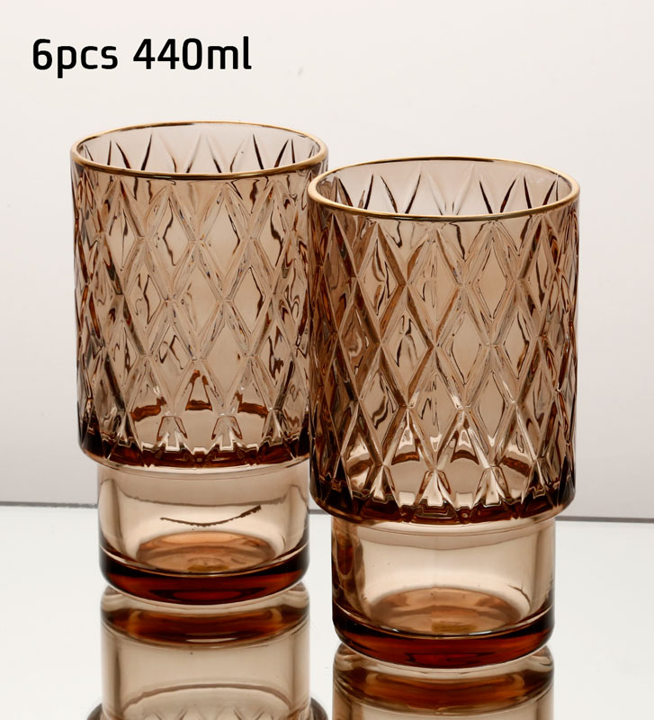 סט 6 כוסות שתייה 440 מ”ל AMBER GOLD CRYSTALINE