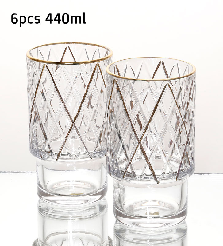 סט 6 כוסות שתייה 440 מ”ל CRYSTALIN פס זהב