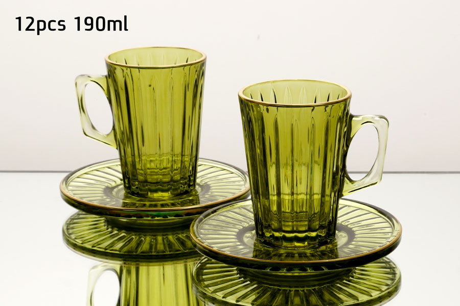 סט 6 כוסות תה + תחתיות 190 מ”ל GREEN GOLD CRYSTALINE