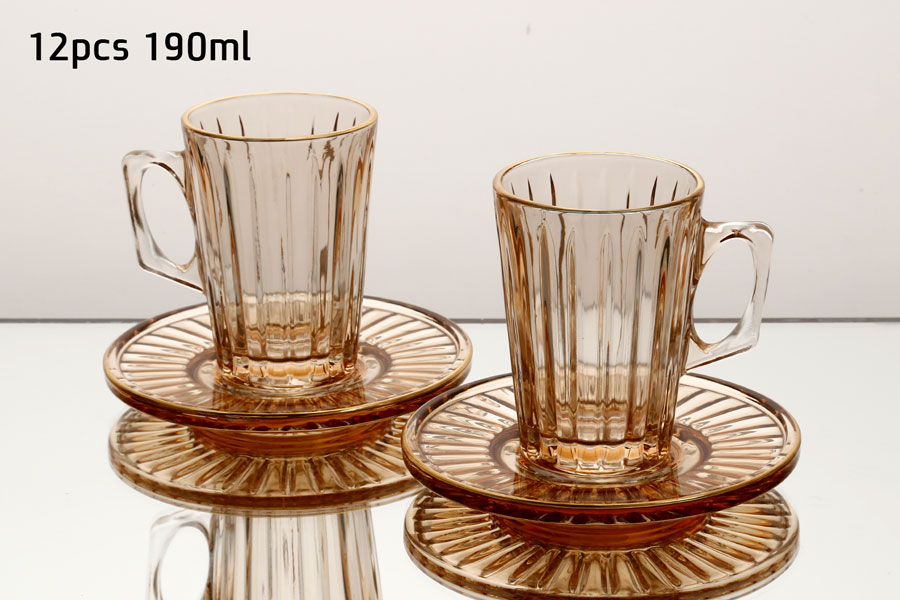 סט 6 כוסות תה + תחתיות 190 מ”ל ROSE GOLD CRYSTALINE