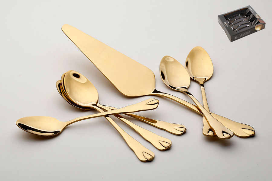 סט 6 כפיות + כף עוגה נירוסטה זהב מבריק