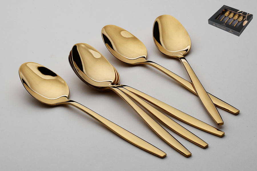 סט 6 כפיות קינוח דגם Gentle נירוסטה 18/10 זהב מבריק