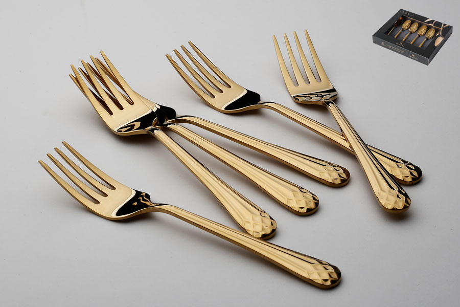 סט 6 מזלגות קינוח דגם Hive נירוסטה 18/10 זהב מבריק