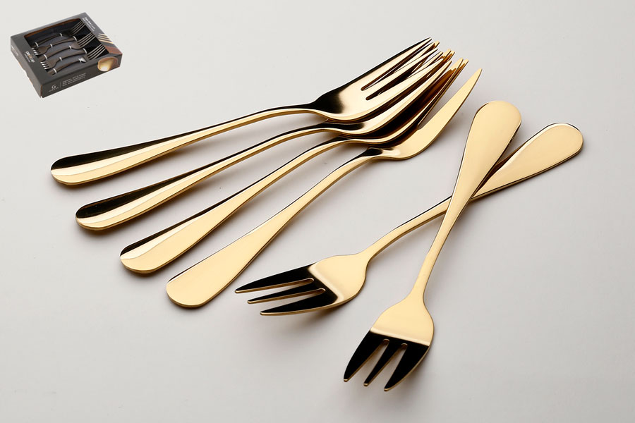סט 6 מזלגות קינוח נירוסטה זהב מבריק