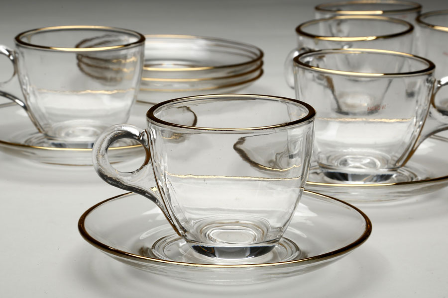 סט 6 ספלי תה זכוכית VSHAND פס זהב