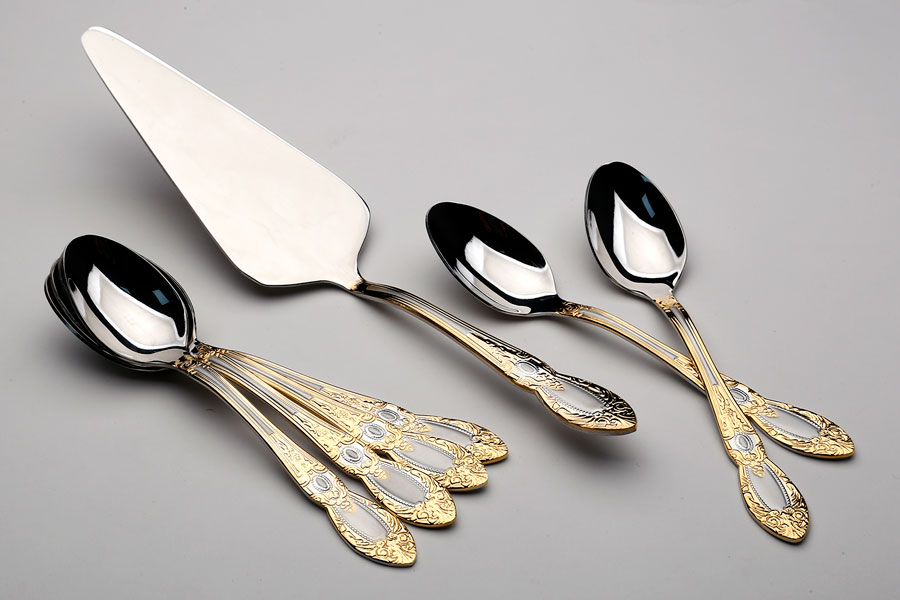 סט 6 כפיות + כף עוגה נירוסטה זהב מט