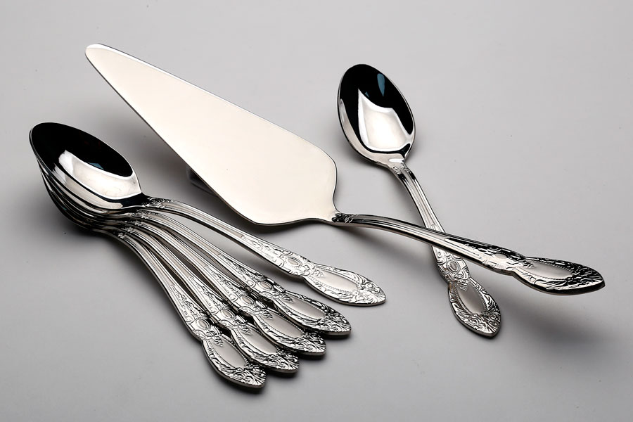 סט 6 כפיות + כף עוגה נירוסטה זהב מט