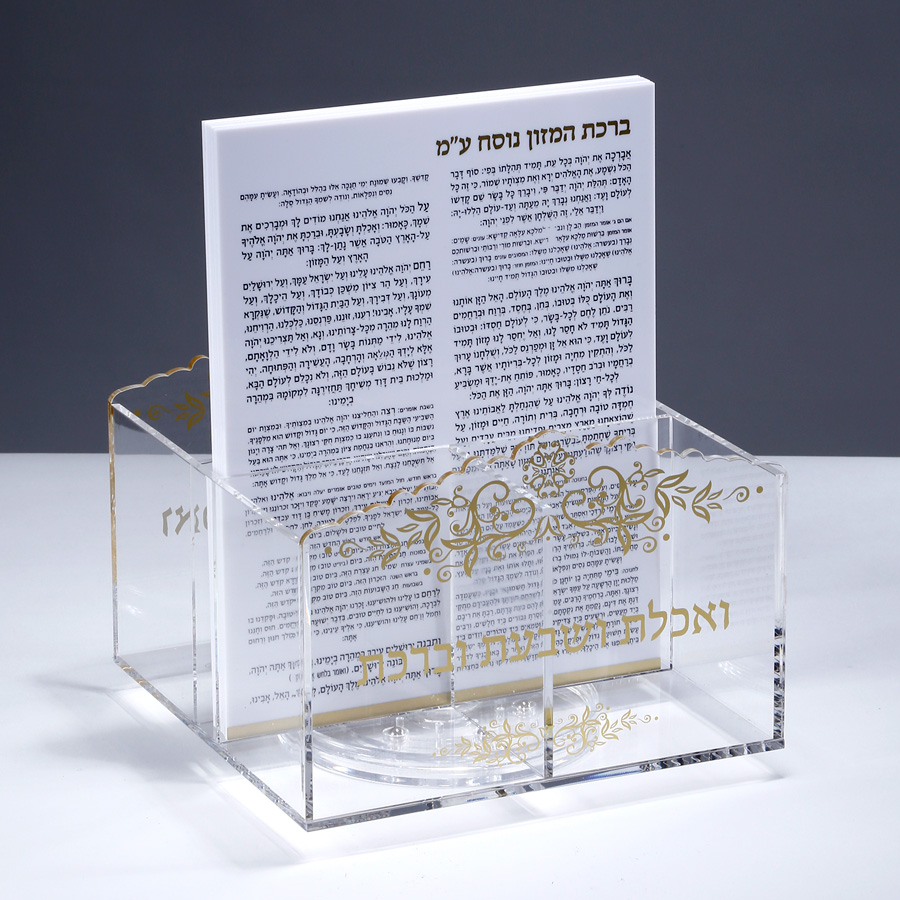 סכומון שולחן אקריליק עיטור זהב + 6 ברכונים נוסח ע”מ