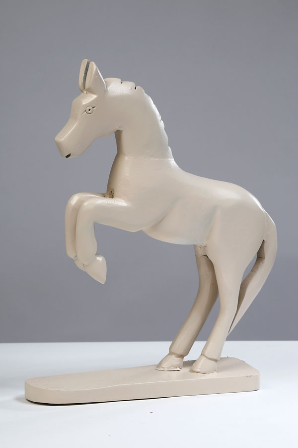 פסל סוס צוהל עשוי עץ 41X38X10 בצבע שמנת