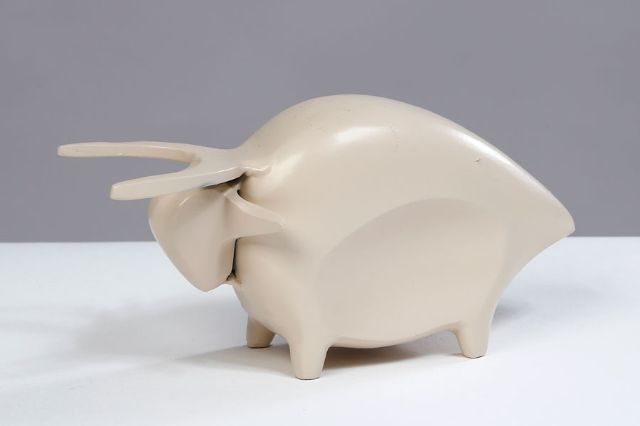 פסל שור עשוי מתכת Brass 12X5 בצבע שמנת