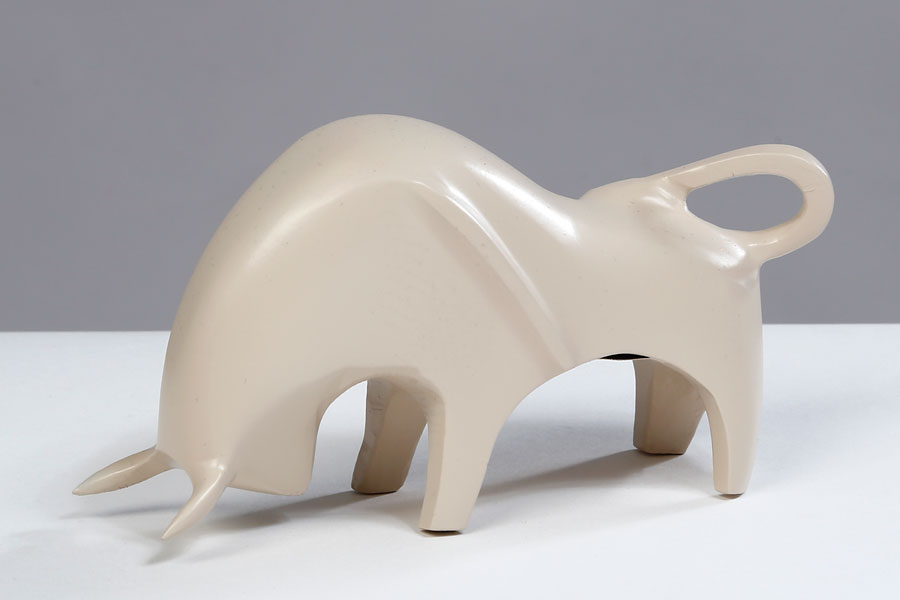 פסל שור עשוי מתכת Brass 12X5 בצבע שמנת