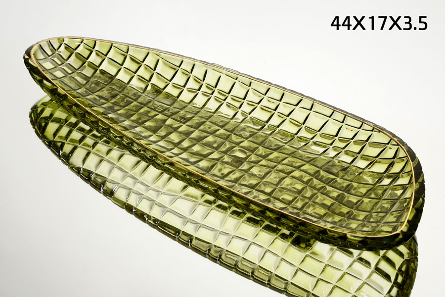 צלחת אינגליש קייק 44X17X3.5 ס”מ GREEN GOLD CRYSTALINE