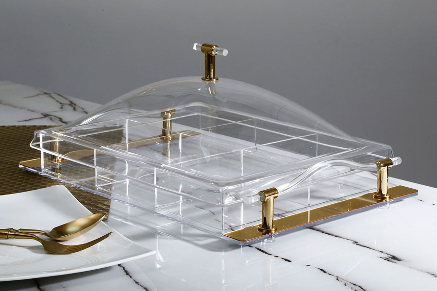 קברט מלבני + מכסה אקריליק 6 תאים פסי זהב