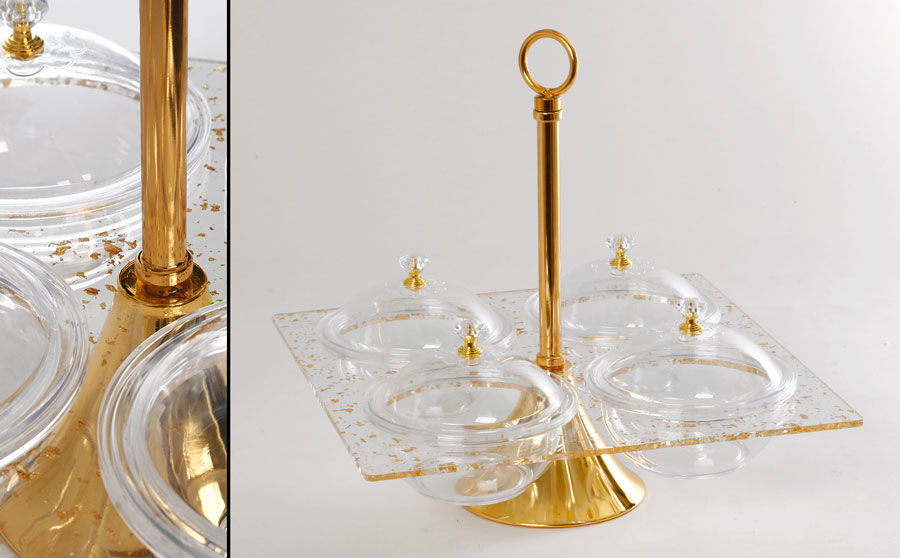קברט GoldParticles אקריליק 4 קעריות עם מכסה עגולות