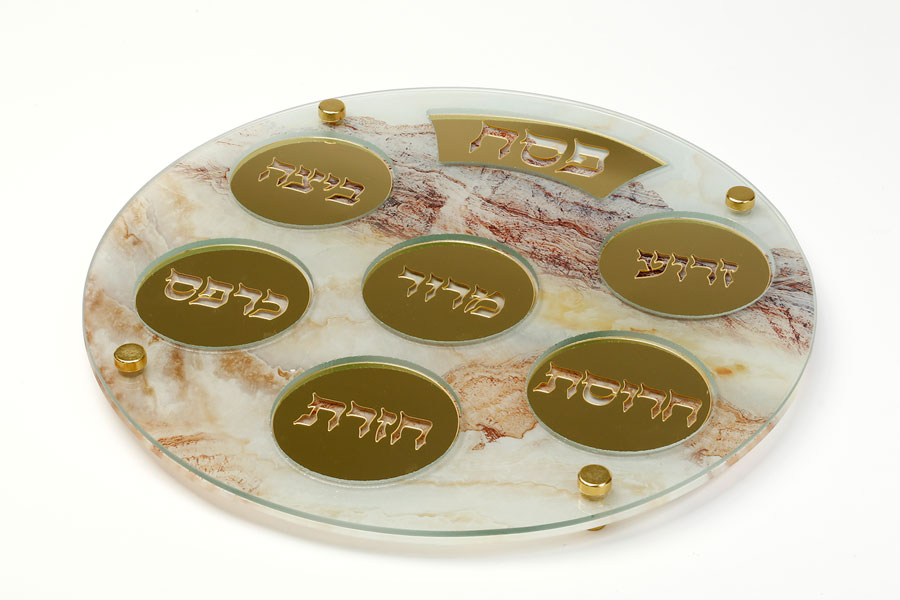 קערת ליל הסדר אקריליק גוון שיש עם ריקועי מתכת כסף
