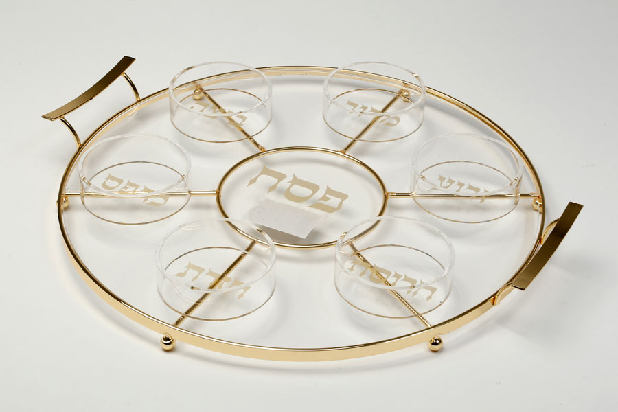 קערת ליל הסדר אקריליק מסגרת מתכת זהב