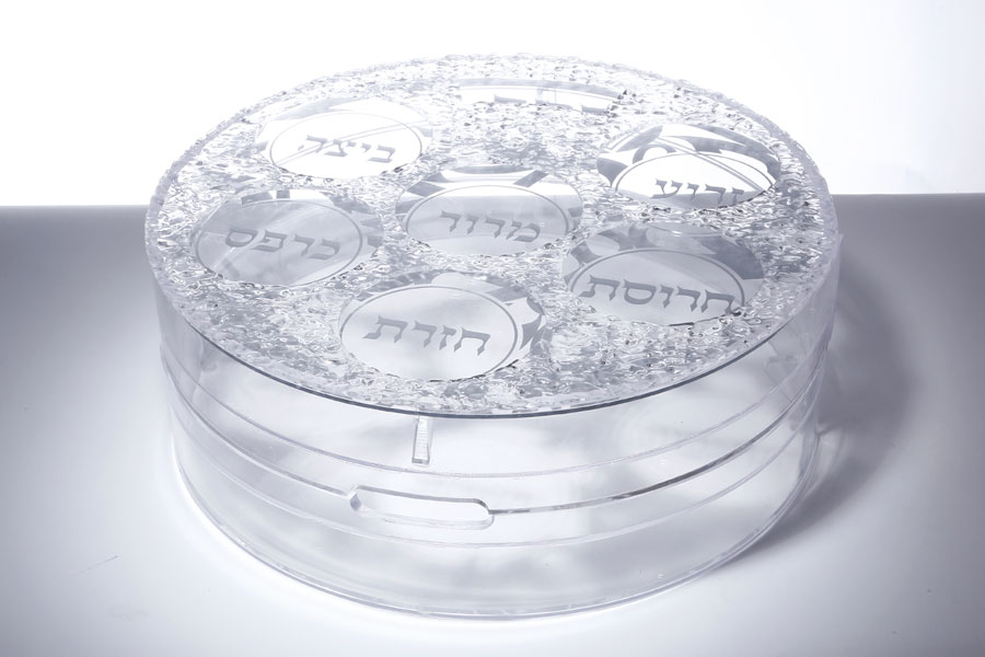 קערת ליל הסדר + מדפי מצות אקריליק גלים הדפס כסף